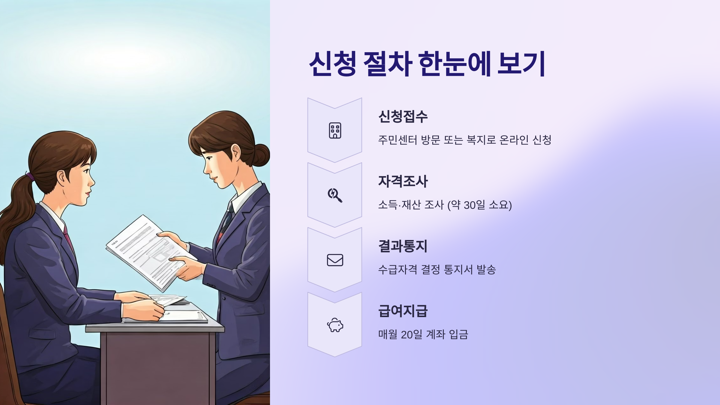 수급 개시 시점은 ‘신청 접수일’이 기준이라 하루라도 늦게 신청하면 지급 개시도 늦어져요.