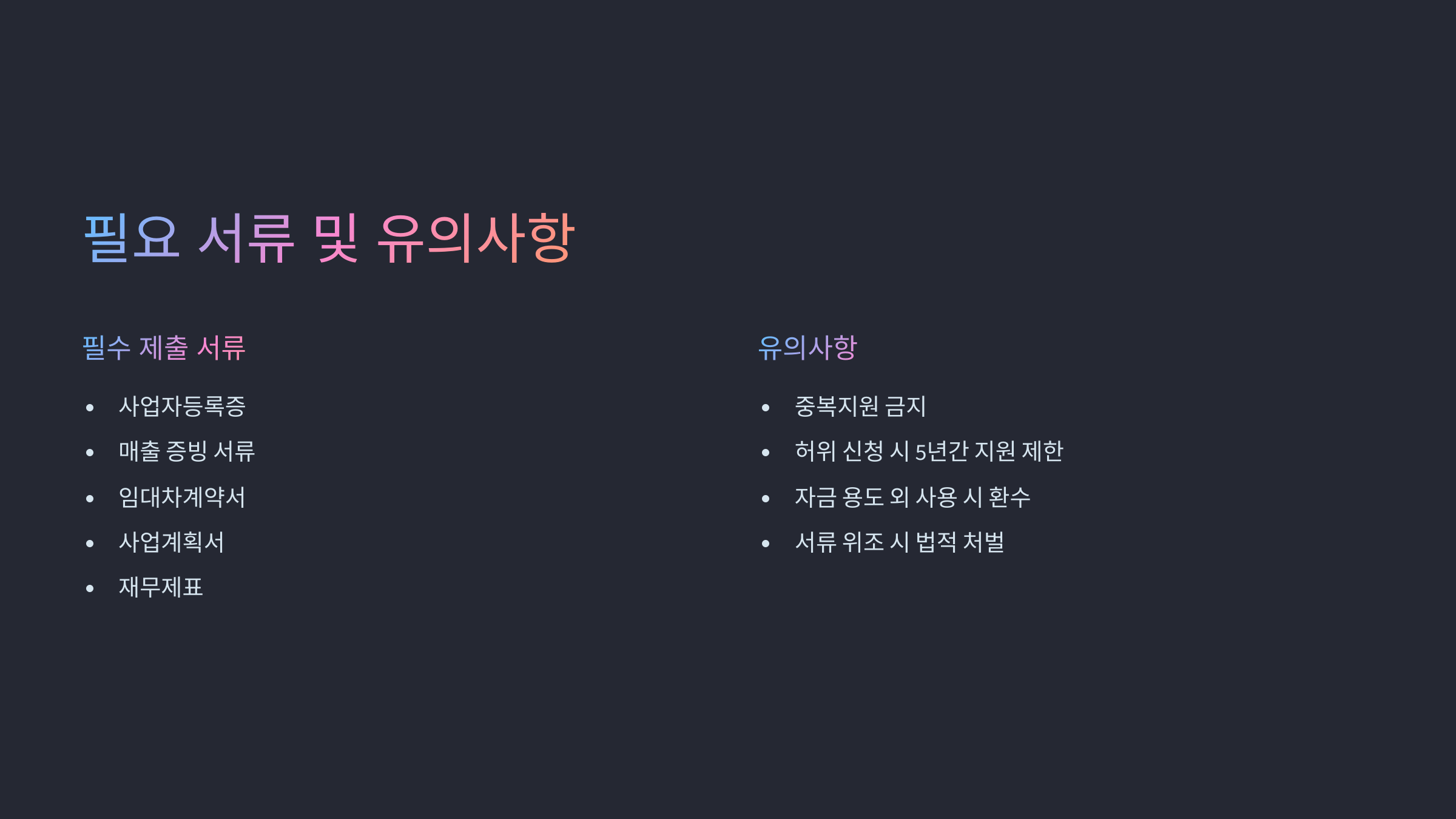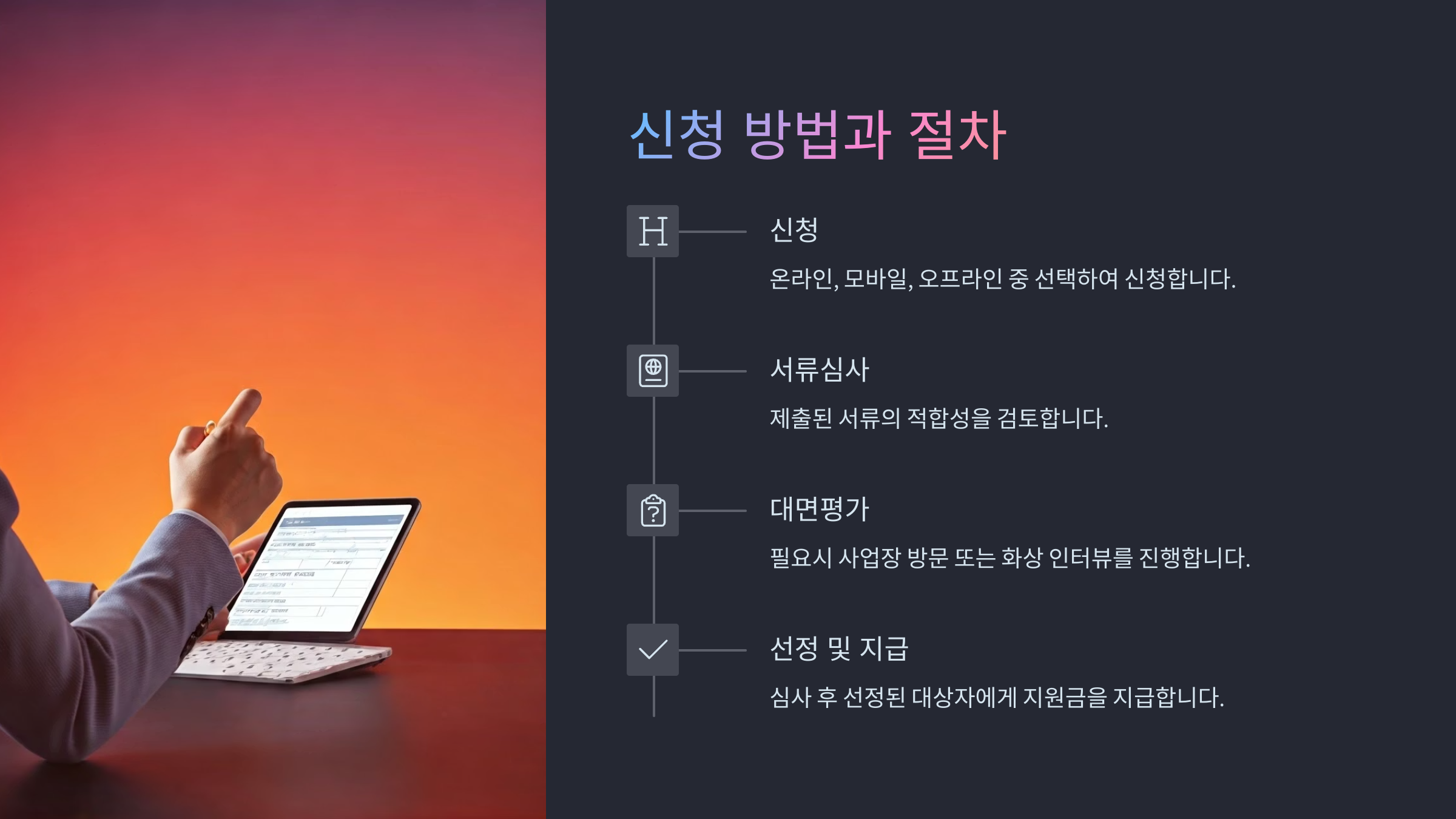 | 2단계 | 지원금 공고 확인 | 업종, 지역별 조건 필수 체크 |