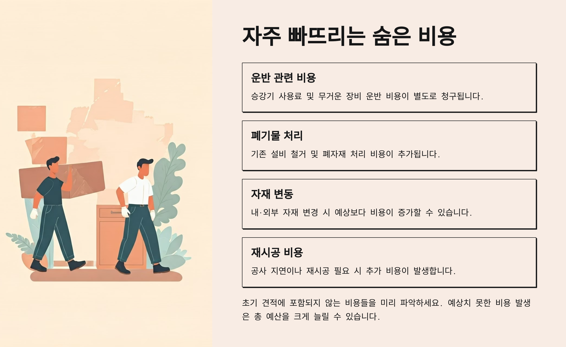 - 🚛 엘리베이터 없는 건물: 층당 인건비 추가 발생 (보통 1만~3만 원)