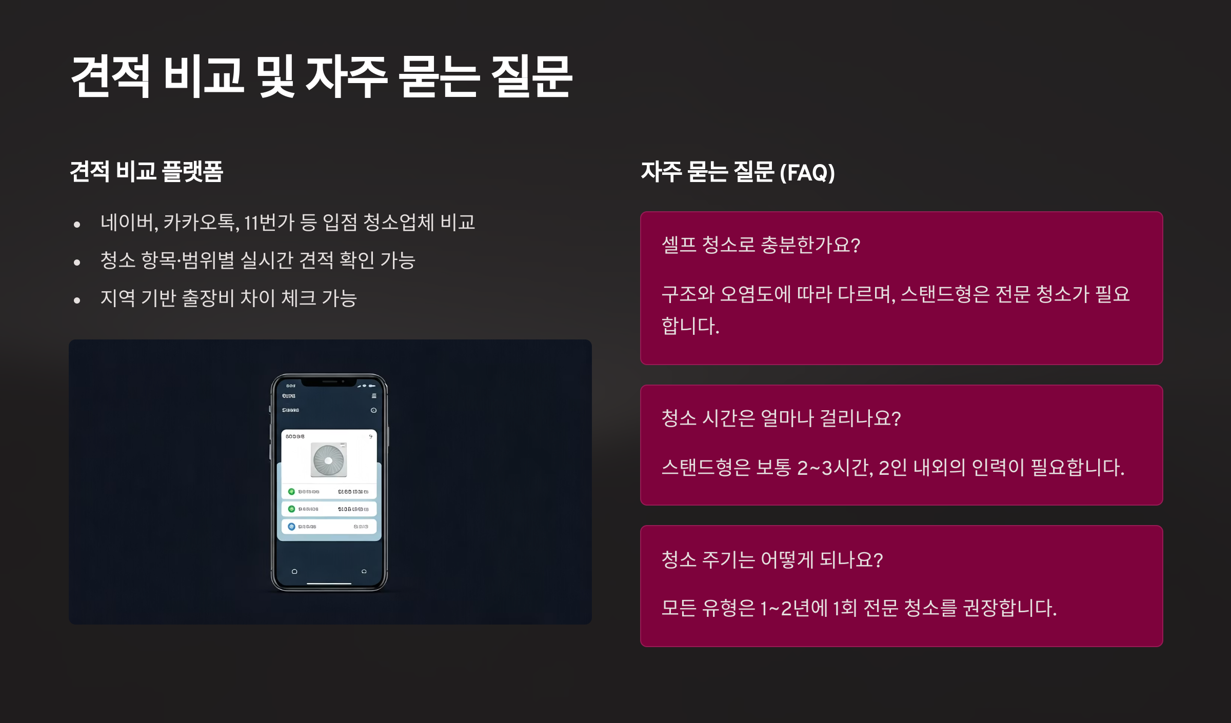 | 렌탈/반납용 | 필터 중심 저가형 청소 | 3만 ~ 5만 원 |