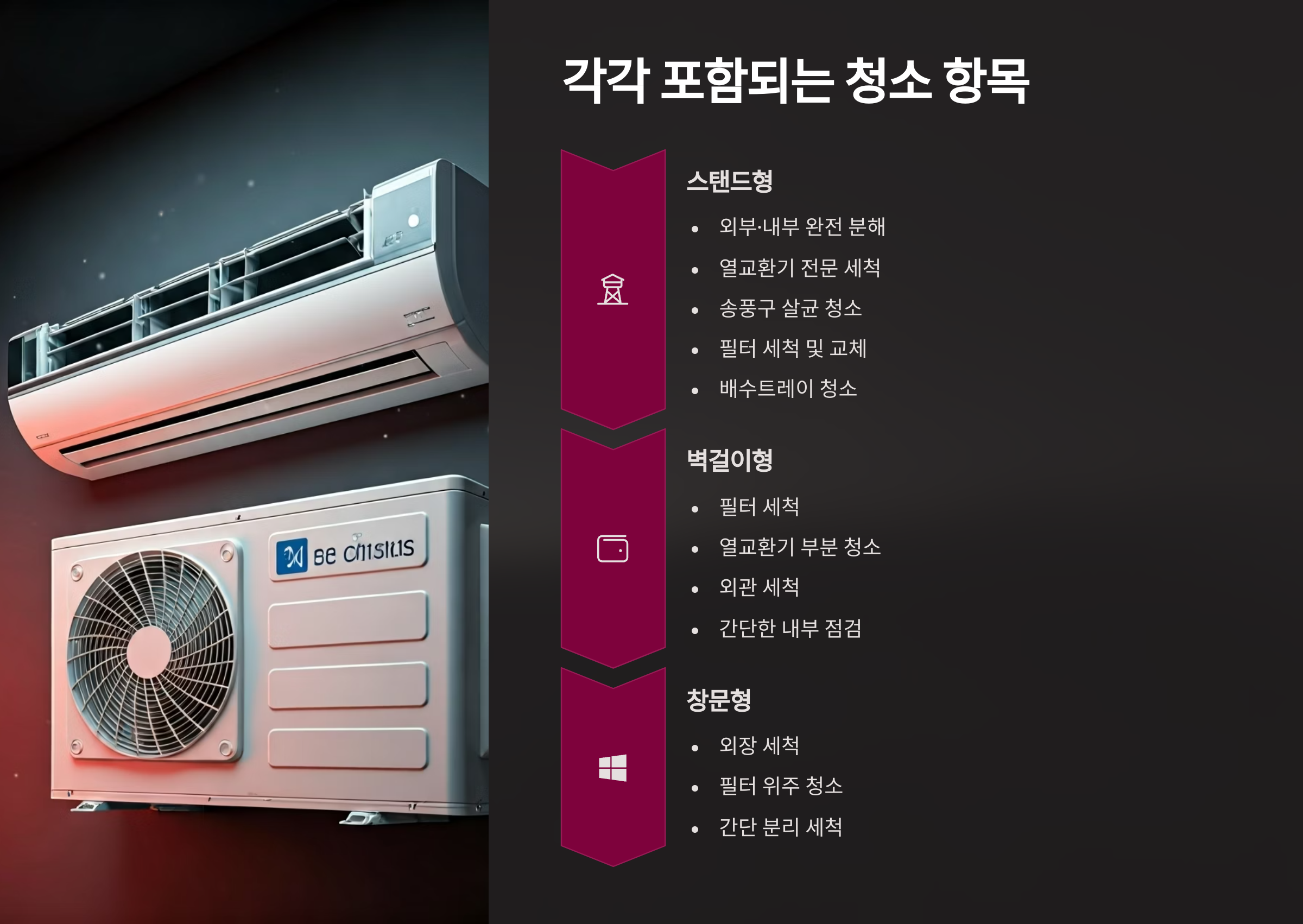 | 냉각핀 고압세척 | ✅ 포함 | ✅ 대형 장비 필요 |
