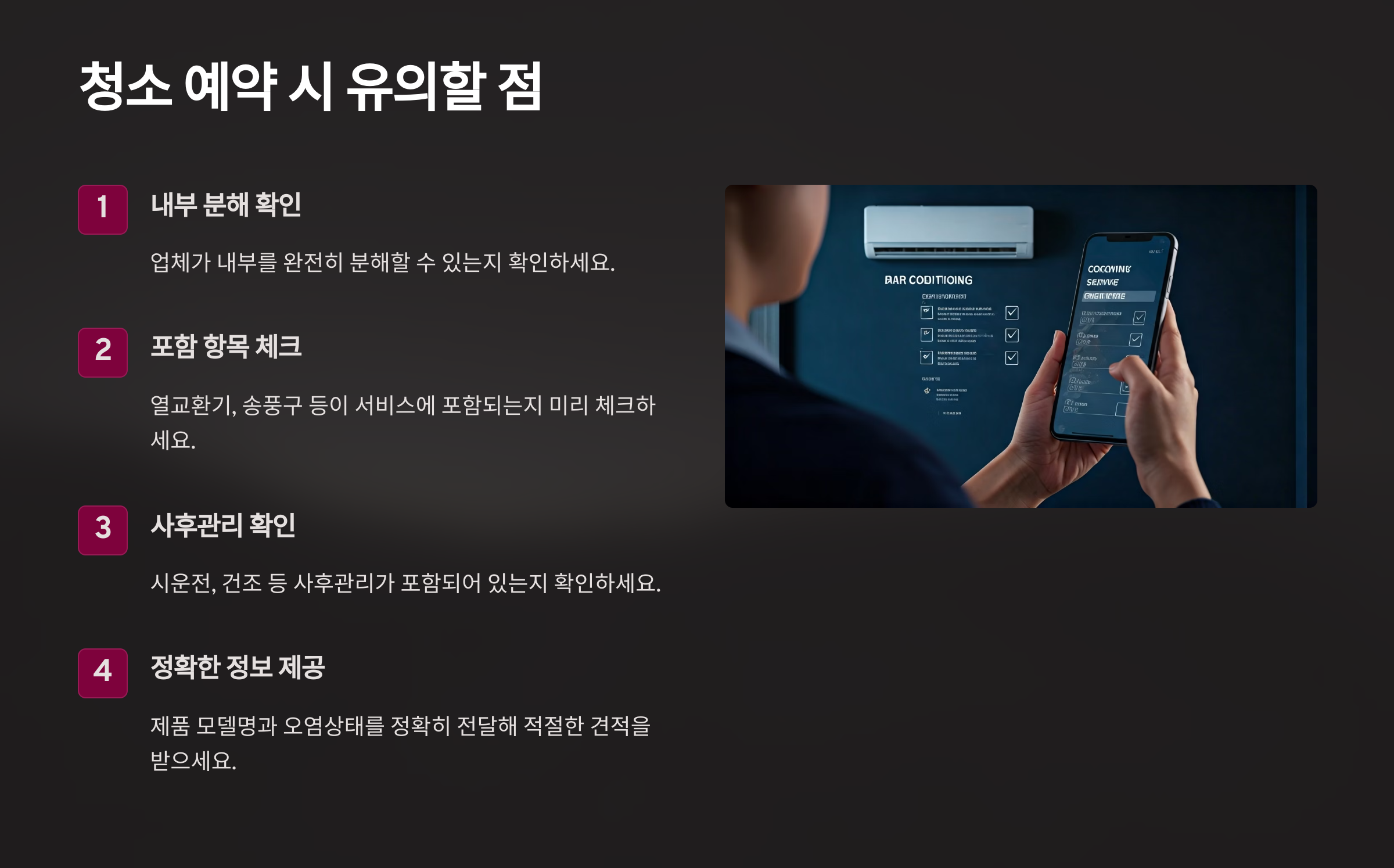 👇 다음은 청소 예약할 때 반드시 체크할 유의사항 정리해드릴게요!