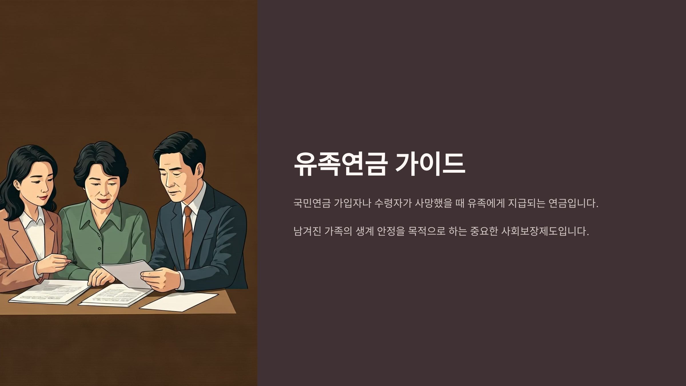 유족연금은 국민연금 수급자가 사망한 경우 남은 가족이 대신 받을 수 있는 제도로, 생계 안정을 위한 중요한 사회보장제도예요.
