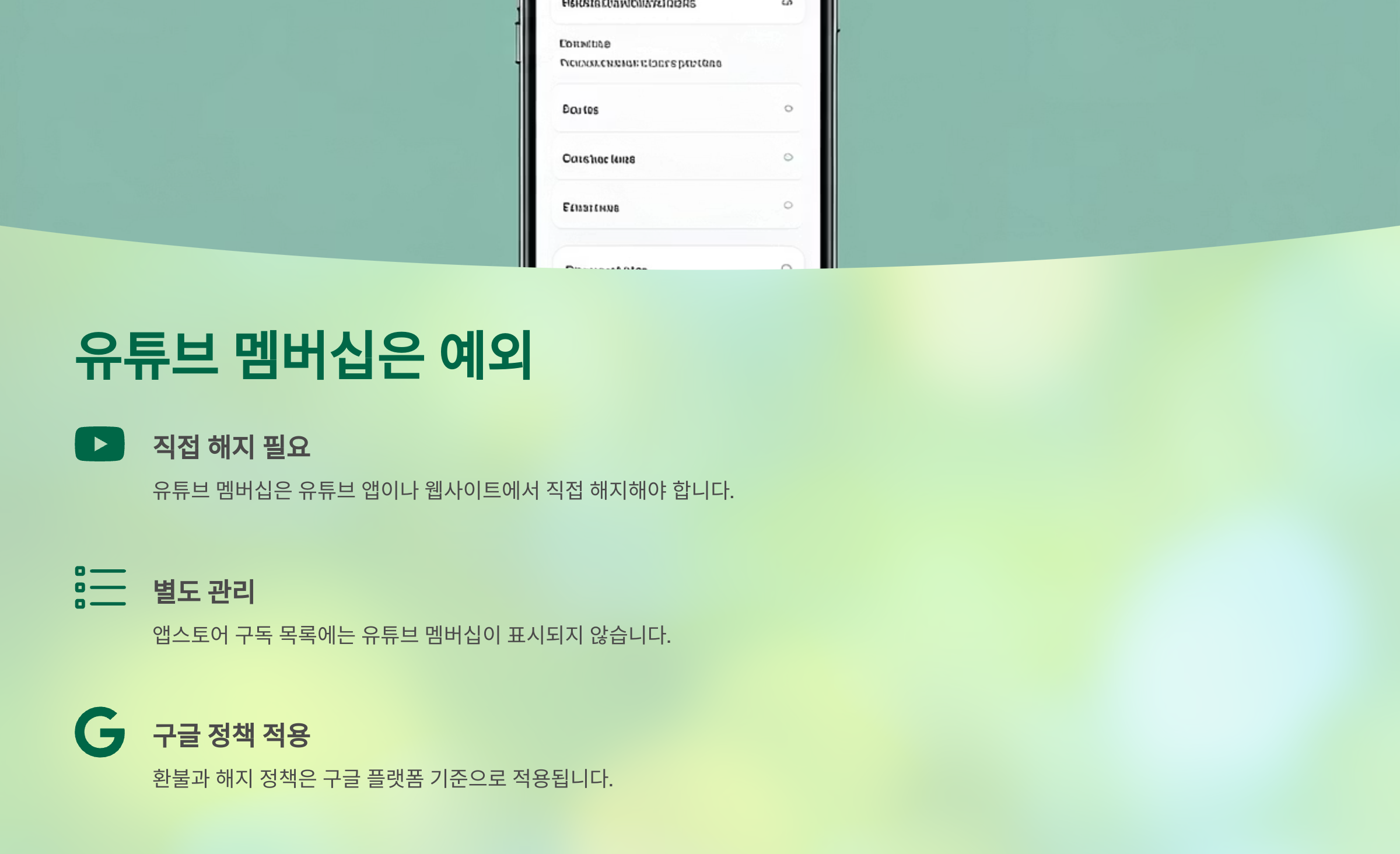 A2. 구글 계정으로 결제했을 경우, 유튜브 웹에서 해지해야 해요.