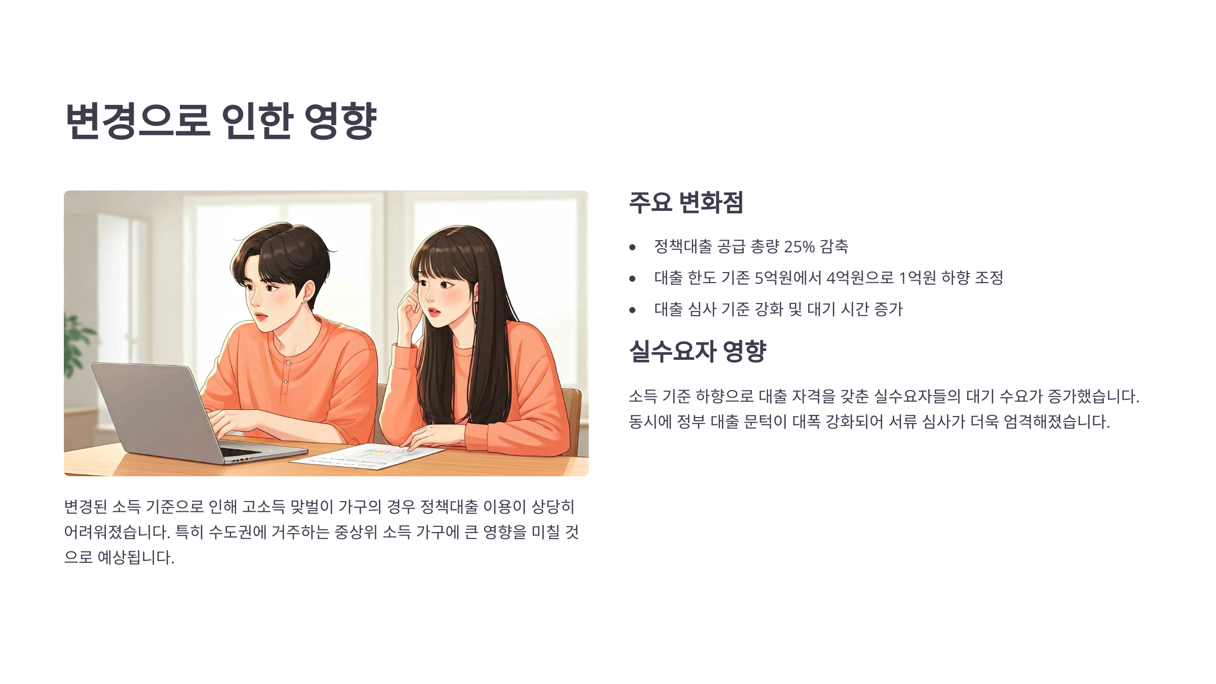 결론적으로, 2025년 소득기준 상향은 단순 확대가 아니라 **실수요 중심의 구조 개편**이라고 봐야 해요.