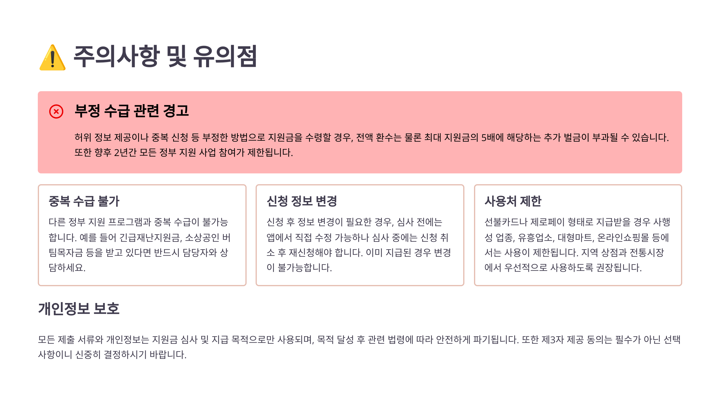 특히 허위신청이나 중복신청은 불이익을 받을 수 있어요. 신청 조건을 정확히 이해하고 진행하는 게 핵심이에요.