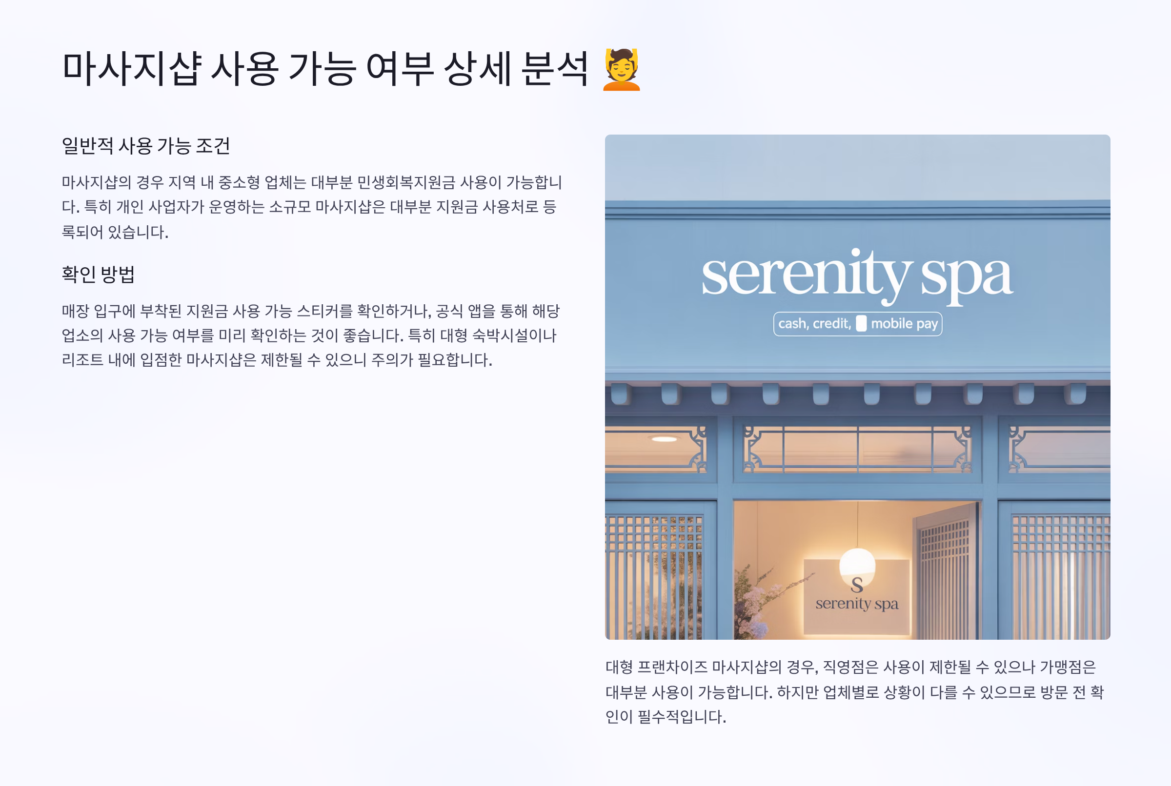 💆 마사지샵 사용 가능 여부 상세 분석