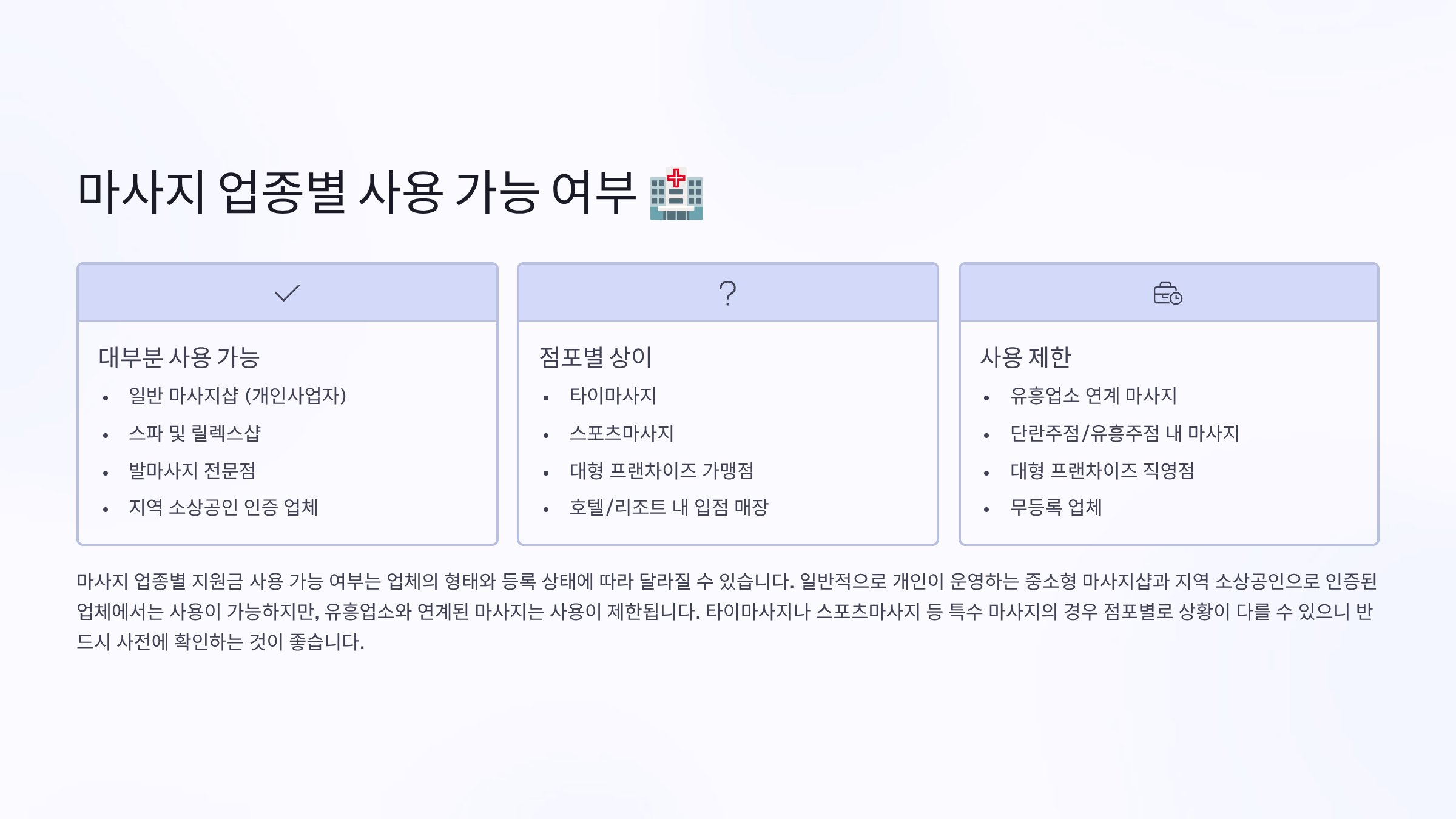 🏥 마사지 업종별 사용 가능 여부