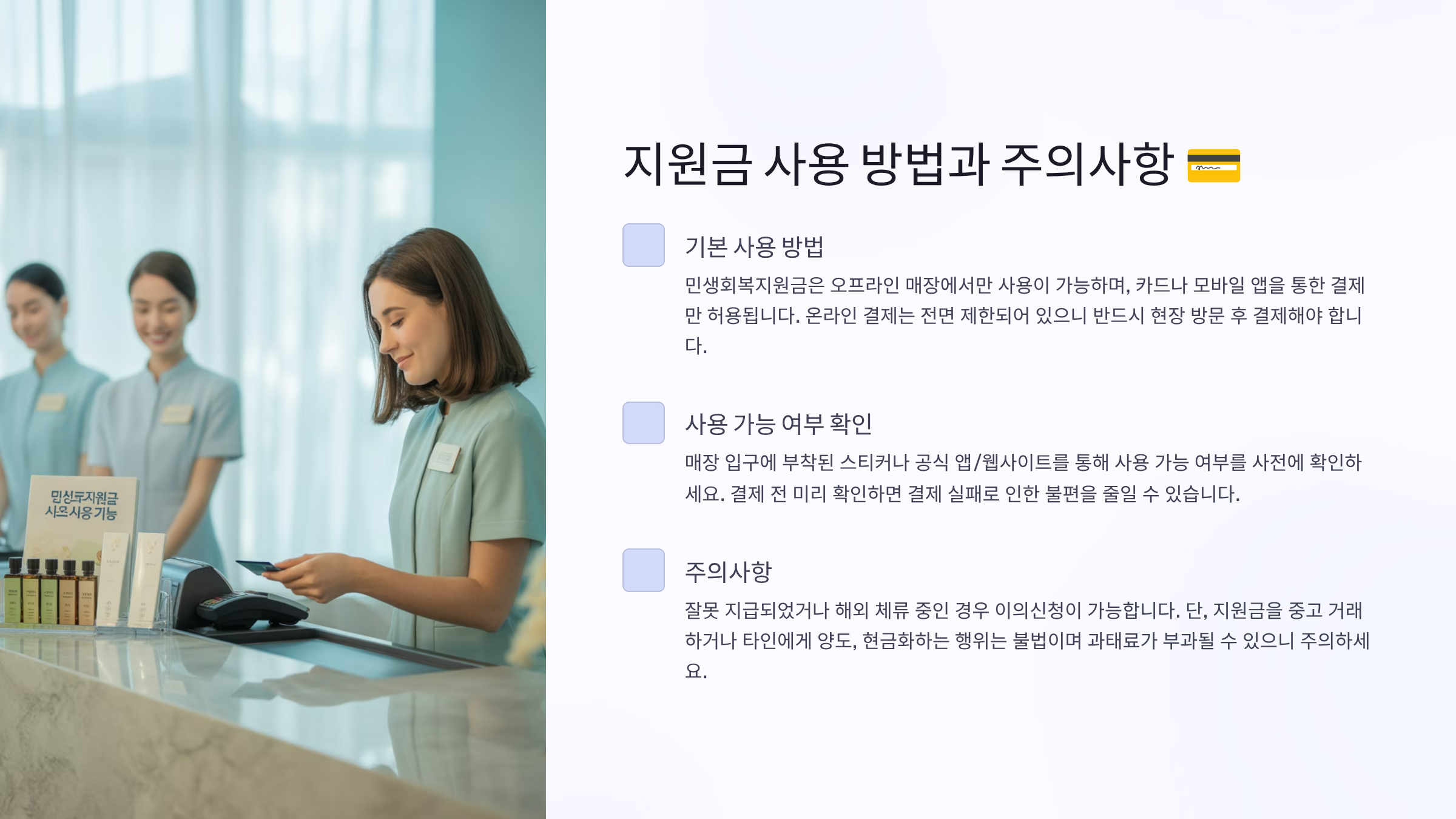 💳 지원금 사용 방법과 주의사항