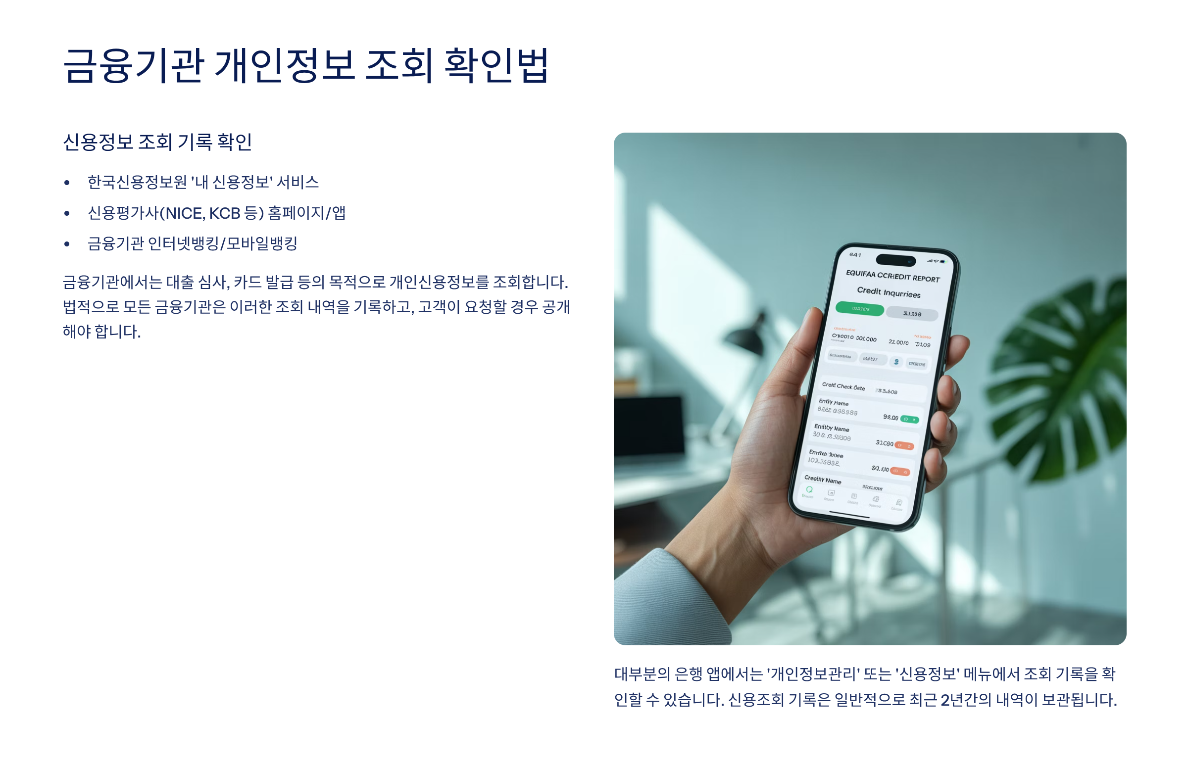 | 조회 목적 | 대출심사, 카드발급 등 | 매우 높음 |