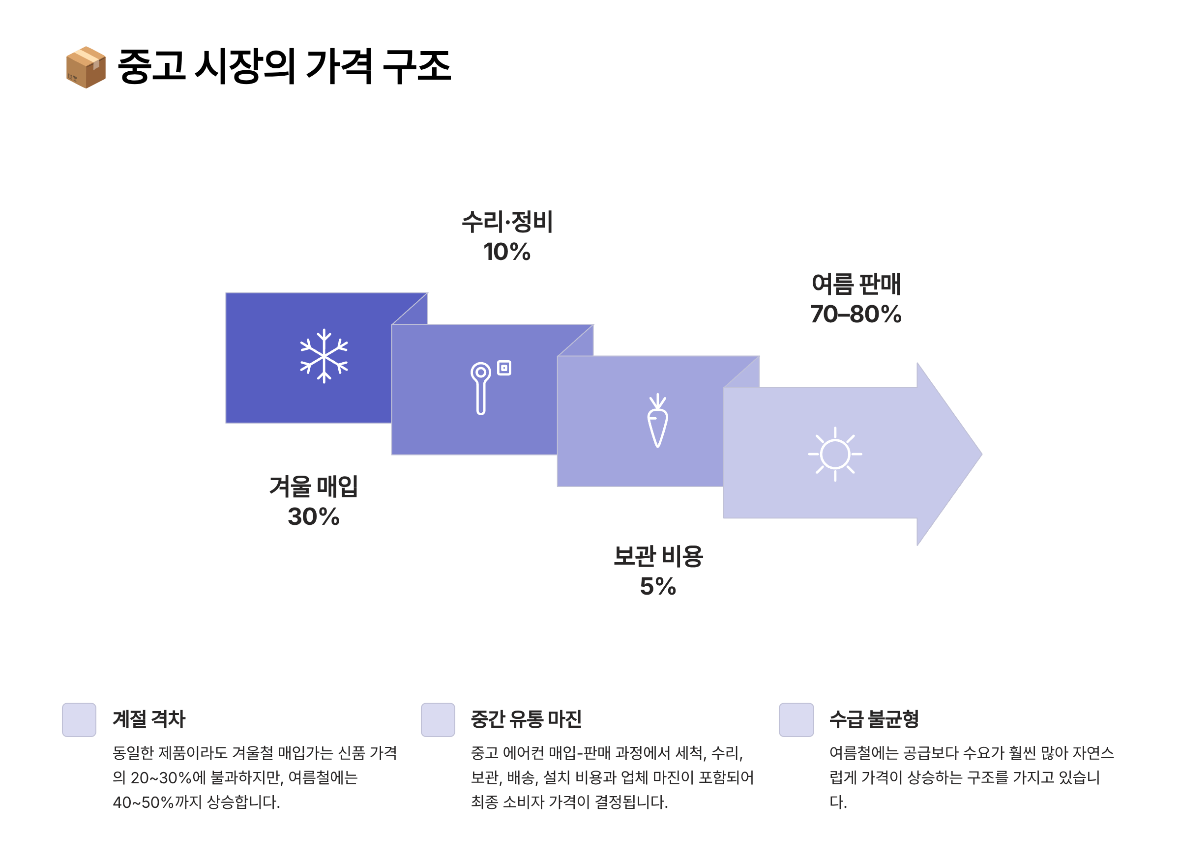 여름철 중고 에어컨 매입가는 단순히 수요·공급만으로 결정되지 않아요. 중고 시장만의 독특한 가격 구조가 있어요. 🔍