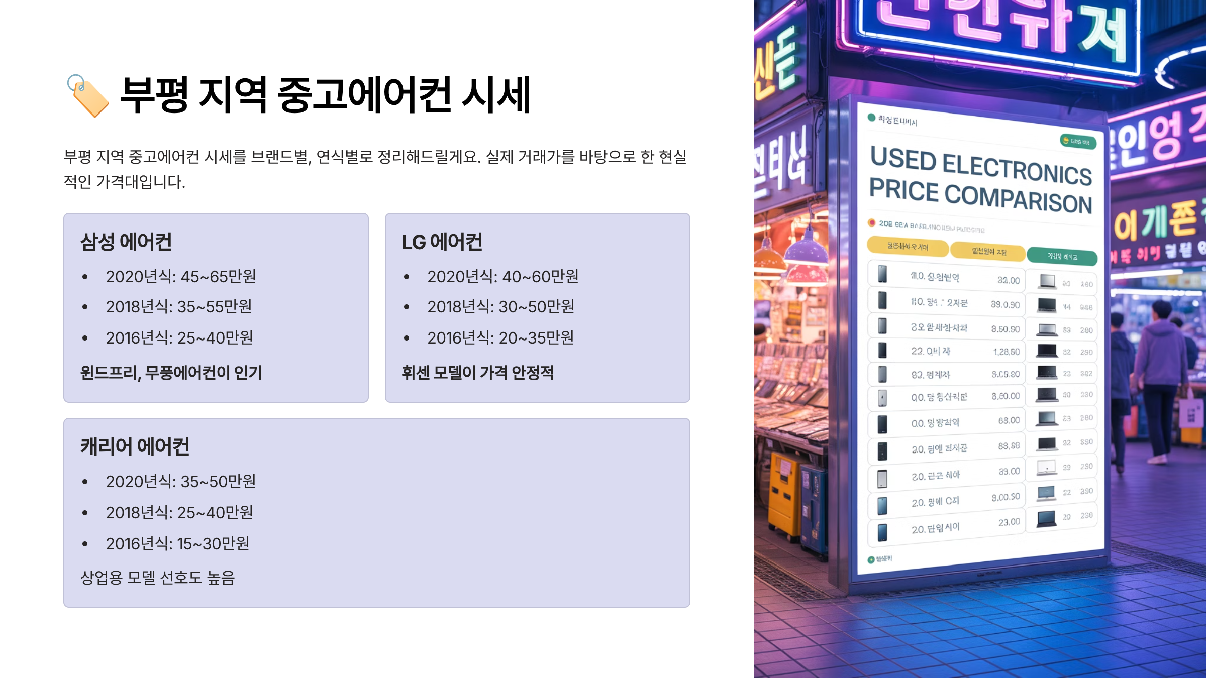 🏷 부평 지역 중고에어컨 시세
