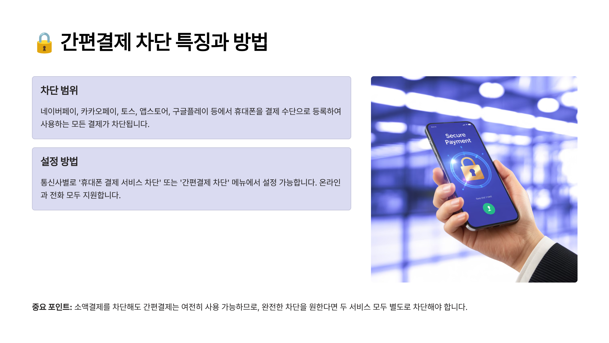 표를 보면 두 서비스는 결제 경로부터 차단 방식까지 다르다는 걸 한눈에 알 수 있어요. 그래서 소액결제만 차단했는데 간편결제는 여전히 되는 상황이 생기는 거예요. 😅