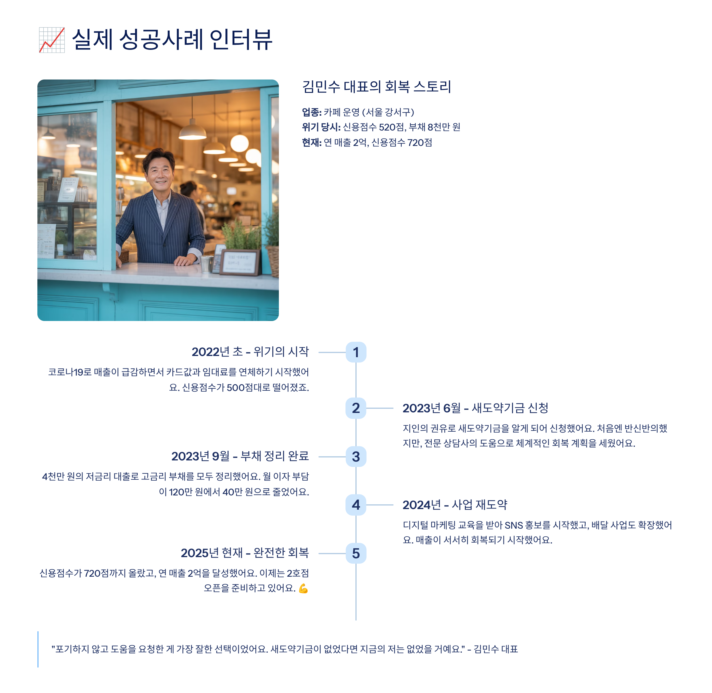 그럼 실제로 이 제도를 통해 다시 일어난 사장님의 이야기를 들어볼까요?