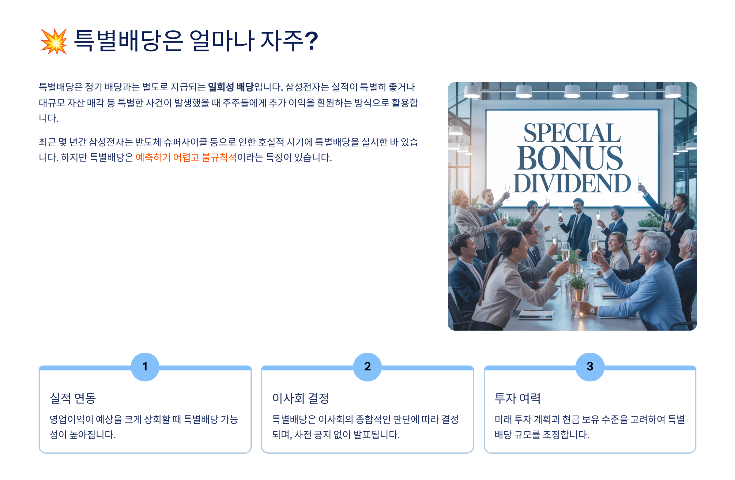- ✅ 특별배당은 이사회 결정 – 일정치 않은 보너스