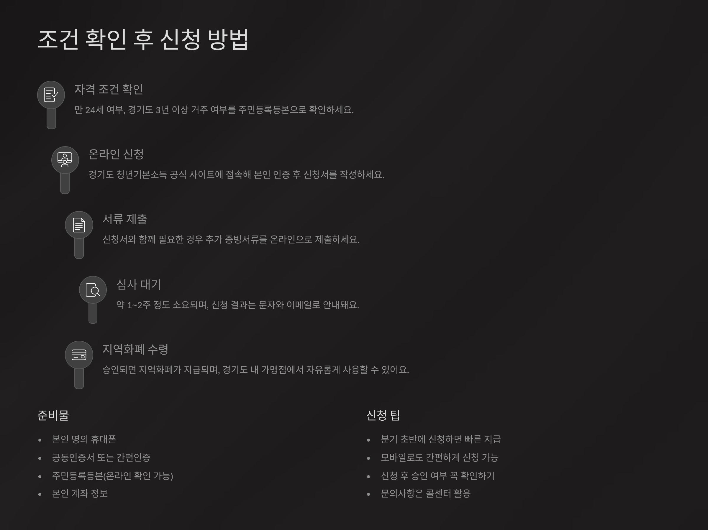 청년기본소득은 경기도 청년이라면 누구나 받을 수 있는 제도처럼 보이지만, 사실 **꼭 충족해야 할 3가지 핵심 조건**이 있어요.