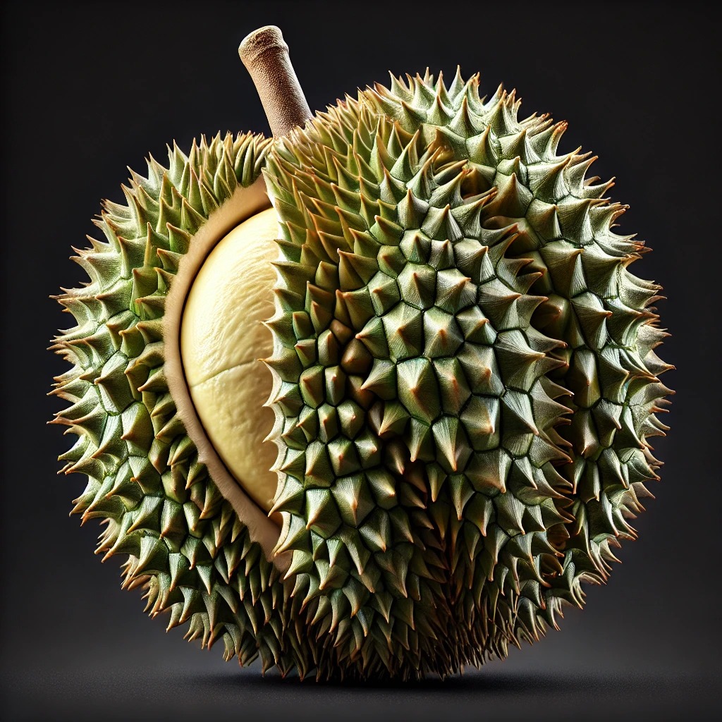 두리안은 크고 무게감이 있는 과일로, 그 크기와 외형에서부터 강렬한 인상을 줍니다. 보통 녹색 또는 황금빛을 띠는 두리안의 껍질은 가시로 덮여 있어 손으로 쉽게 다루기 어려운데, 이 때문에 두리안을 잘못 다루다가 손을 다치는 일도 종종 발생합니다. 두리안의 향은 강렬하여, 이를 "지옥의 냄새, 천국의 맛"이라 표현하는 사람들도 있습니다. 실제로 두리안은 강한 냄새 때문에 동남아시아의 여러 공공장소에서는 반입이 금지되어 있을 정도로 그 향이 문제시되기도 합니다. 그러나 그 속살은 마치 크림처럼 부드럽고, 달콤하면서도 고소한 맛을 자랑합니다. 두리안의 과육은 크림색에서 노란색을 띠며, 품종에 따라 색상과 맛이 조금씩 다릅니다. 특히 맛에서는 달콤함과 약간의 쓴맛이 독특하게 조화를 이루어 다른 어떤 과일과도 비교할 수 없는 맛을 제공합니다.